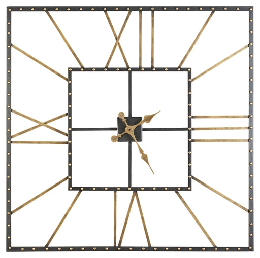Signature Design by Ashley®This striking wall clock is a beautiful blend of classic style and industrial charm. A black finish and goldtone Roman numerals add a touch of soph...