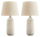 Details Made of ceramic with modified drum hardback fabric shade, Off-white finish with transparent glaze, 3-way switch, E26 socket, type A bulb (not included); 100 watts max or LED equivalent, UL Listed, Assembly required