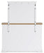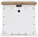 Details B844B4: Includes panel headboard, storage footboard, rails and roll slats, Footboard made with hardwood solids, MDF substrates and butcher block oak veneer, Headboard and rails made with hardwood solids and MDF substrates, White finish, Headboard with inset black metal barn sash, 2 drawers in footboard with fully finished interior, dovetail construction and ball-bearing side glides, Pulls with matte black finish, Bed does not require a foundation/box spring, Mattress available, sold separately, Assembly required, B844B1: Includes dresser and mirror, Made with hardwood solids, MDF substrates and butcher block oak veneer, Dresser with 2-tone finish (white finish; butcher block oak veneer with natural finish), Pulls with matte black finish, 10 spacious drawers with fully finished interiors (top drawers felt lined), dovetail construction and ball-bearing side glides , Drawers with inset picture fronts, Mirror attaches to back of dresser, B844-93: Made with hardwood solids, MDF substrates and butcher block oak veneer, 2-tone finish (white finish; butcher block oak veneer with natural finish), Pulls with matte black finish, 3 spacious drawers with fully finished interiors (top drawers felt lined), dovetail construction and ball-bearing side glides, 110V power supply with dual USB charging ports, Power cord included; UL Listed, Drawers with inset picture frame fronts,