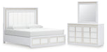 Chalanna King Upholstered Storage Bed with Mirrored Dresser