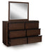 | Details | PCB857B6: Includes canopy, upholstered headboard, footboard, rails, posts and slats, Made with hardwood solids, mango wood veneer and MDF substrates , Side rails feature laminated solid hardwood slat support rails (or LVL) with glued and screwed blocking for added strength, Complex, rich dark brown finish, Foam headboard cushion with polyester upholstery , Measure room, including ceiling height, to ensure bed clears fans and light fixtures, Foam cushion with polyester upholstery , Foundation/box spring required, sold separately , Mattress available, sold separately , USB-A and USB-C charging ports, Power cord included; UL Listed, Assembly required, PCB857B1: Made with hardwood solids, mango wood veneer and MDF substrates , Complex, rich dark brown finish, Full-length metal rail pulls with matte black finish, 6 smooth-gliding drawers with fully finished interiors, dovetail construction and heavy-duty ball-bearing side glides (top drawers felt lined), Mirror attaches to back of dresser, Soft rounded pilasters, Raised plinth base, PCB857-46: Made with hardwood solids, mango wood veneer and MDF substrates, Complex, rich dark brown finish, Metal rail pulls with matte black finish, 5 smooth-gliding drawers with fully finished interiors, dovetail construction and heavy-duty ball-bearing side glides (top drawer felt lined), Soft rounded pilasters, Raised plinth base, PCB857-92: Made with hardwood solids, mango wood veneer and MDF substrates, Complex, rich dark brown finish, Metal rail pulls with matte black finish, 2 smooth-gliding drawers with fully finished interiors, dovetail construction and heavy-duty ball-bearing side glides (top drawer felt lined), Soft rounded pilasters, Raised plinth base, | |