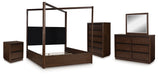 Dilenno King Canopy Bed with Mirrored Dresser, Chest and Nightstand