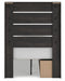 | Details | PCB2108B17: Includes panel headboard/footboard, rails with side storage and roll slats, Made with engineered wood (MDF/particleboard/plywood) and decorative laminate for the right balance of affordability and durability , Charcoal finish over replicated oak grain with authentic touch, Decorative laminate replicates natural or man-made material surfaces with consistent color, pattern and texture, 2 smooth-gliding drawers, 2 storage cubbies, Bed does not require additional foundation/box spring; accommodates most zero clearance adjustable bases with the addition of a bunkie board, Mattress available, sold separately, Minor assembly required, PCB2108B1: Includes dresser and mirror, Made with engineered wood (MDF/particleboard/plywood) and decorative laminate for the right balance of affordability and durability , Charcoal finish over replicated oak grain with authentic touch, Decorative laminate replicates natural or man-made material surfaces with consistent color, pattern and texture, Large-scale dark colored handles, 6 smooth-gliding drawers, Drawer interiors are lined with a faux linen laminate for a clean, finished look , Mirror attaches to back of dresser; can also be mounted on wall horizontally or vertically, Safety is a top priority, clothing storage units are designed to meet the most current standard for stability, ASTM F 2057 (ASTM International), Drawers extend out to accommodate maximum access to drawer interior while maintaining safety, Minor assembly required, | |