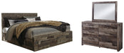 Derekson King Panel Bed with 2 Storage Drawers with Mirrored Dresser