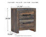 | Details | B211-46: Made of engineered wood (MDF/particleboard) and decorative laminate, Brown rustic finish with burnt orange and teal accents in a replicated wood grain with authentic touch, Large-scale hardware with dark finish, 5 smooth-gliding drawers, Drawer interiors are lined with a faux linen laminate for a clean, finished look, Includes tipover restraint device, Small Space Solution, Safety is a top priority, clothing storage units are designed to meet the most current standard for stability, ASTM F 2057 (ASTM International), Drawers extend out to accommodate maximum access to drawer interior while maintaining safety, B211-92: Made of engineered wood (MDF/particleboard) and decorative laminate, Brown rustic finish with burnt orange and teal accents in a replicated wood grain with authentic touch, 2 smooth-gliding drawers, Drawer interiors are lined with a faux linen laminate for a clean, finished look, Large-scale hardware with dark finish, 2 slim-profile USB-C charging stations, Power cord included; UL Listed, Small Space Solution, B211B1: Made of engineered wood (MDF/particleboard) and decorative laminate, Brown rustic finish with burnt orange and teal accents in a replicated wood grain with authentic touch, 6 smooth-gliding drawers, Drawers lined with faux linen laminate, Dark-tone industrial hardware, Mirror attaches to back of dresser, Assembly required, Includes tipover restraint device, B211B53: Includes bookcase headboard, footboard and rails, Made of engineered wood (MDF/particleboard) and decorative laminate, Brown rustic finish with burnt orange and teal accents in a replicated wood grain with authentic touch, Headboard includes a dimming LED light; 3 open cubbies, Foundation/box spring required, sold separately, Mattress available, sold separately, Assembly required, Bed is compatible with an adjustable base, | |