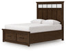Style, simplicity and charm are hallmarks of this queen panel storage bed. Created with casual spaces in mind, it has the versatility to suit styles from craftsman to modern farmhouse. The rich brown finish aligns with your refined-meets-relaxed approach to everyday style. Short on storage space? Ultra-spacious under bed drawers keep extra clothes and linens neatly tucked away. And for a timeless touch, black metal fretwork on the headboard brings an inviting mixed-material feel to the overall look.
