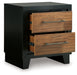 Experience the captivating allure of this nightstand, an effortless blend of casual and refined aesthetics. Its two-tone finish combines satin black with a rich brown wood tone for a modern, relaxed vibe that you'll love waking up to. Perfectly suited for your contemporary home, this nightstand has plenty of drawer space to tuck away your bedside essentials.
