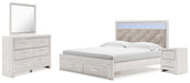 Altyra King Upholstered Storage Bed with Mirrored Dresser and Nightstand