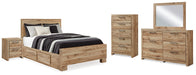Hyanna Queen Panel Bed with Storage with Mirrored Dresser, Chest and Nightstand