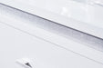 | Details | Includes dresser and mirror, Dresser made with hardwood solids and MDF substrates , Mirror made with solid wood, White paint finish, Dresser with inset acrylic glitter accents, Horizontal metal drawer pulls, 6 drawers with fully finished interiors, dovetail construction and heavy-duty ball-bearing side glides, Textured drawer fronts, Mirror with inset LED lighting; 3-way dimmer switch, Power cord included; UL Listed | |