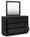 Details B768B5: Includes headboard, footboard and rails, Made with pine solids, veneers and engineered wood substrate, Textured black wood stain with waxy topcoat, Extra wide rails for a bench-like wrap around, Foundation/box spring required, sold separately, Mattress available, sold separately, Assembly required, B768B1: Includes dresser and mirror, Made with pine solids, veneers and engineered wood substrate, Textured black wood stain with waxy topcoat, Hardware-less design, 6 drawers with fully finished interiors, dovetail construction and ball-bearing side glides (top drawers felt lined), Mirror attaches to back of dresser, B768-46: Made with pine solids, veneers and engineered wood substrate, Textured black wood stain with waxy topcoat, Hardware-less design, 5 drawers with fully finished interiors, dovetail construction and ball-bearing side glides (top drawers with felt-lined bottoms), B768-92: Made with pine solids, veneers and engineered wood substrate, Textured black wood stain with waxy topcoat, Hardware-less design, 2 drawers with fully finished interiors, dovetail construction and ball-bearing side glides, 110V power supply with dual USB charging ports, Power cord included; UL Listed,