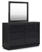 | Details | B768B4: Includes headboard, footboard and rails, Made with pine solids, veneers and engineered wood substrate, Textured black wood stain with waxy topcoat, Extra wide rails for a bench-like wrap around, Foundation/box spring required, sold separately, Mattress available, sold separately, Assembly required, B768B1: Includes dresser and mirror, Made with pine solids, veneers and engineered wood substrate, Textured black wood stain with waxy topcoat, Hardware-less design, 6 drawers with fully finished interiors, dovetail construction and ball-bearing side glides (top drawers felt lined), Mirror attaches to back of dresser, B768-92: Made with pine solids, veneers and engineered wood substrate, Textured black wood stain with waxy topcoat, Hardware-less design, 2 drawers with fully finished interiors, dovetail construction and ball-bearing side glides, 110V power supply with dual USB charging ports, Power cord included; UL Listed, | |