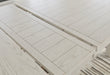 | Details | D642-32: Made with rubberwood solids, ash veneer and MDF substrates, Antiqued white finish with wood grain texture, Tabletop with planked effect, Two 12” extension leaves, Table extends by pulling both ends and dropping in leaf, Assembly required, D642-124: Made with wood, Antiqued white finish with wood grain texture, Foam cushion with polyester upholstery, Nailhead trim, X-back, Assembly required, | |