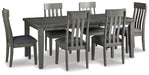 Cool and on-trend. This dining package sports a two-tone gray look for a contemporary-yet-casual feel. The rectangular table features a thick sturdy top with a self-storing butterfly leaf, making it a breeze to expand your table space. Comfortably cushioned, the side chair features a padded seat, while its contoured comb-back design adds a dash of geometric flair. Gray textural fabric pairs seamlessly with the antiqued gray finish of the table.