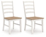 Busy breakfasts and family dinners get a dose of modern farmhouse flair with this dining chair. Its two-tone finish contrasts a light butcher block hue with an antiqued white frame for an utterly charming effect. A contoured seat elevates the comfort level. Complete with a ladderback design, it's an effortless seating solution with chic character.