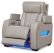 | Details | One-touch power control with adjustable positions, Easy View™ adjustable headrest and zero-draw USB port, Zero-draw technology only consumes power when the USB receptacle is in use, Extended ottoman for enhanced comfort; zero-gravity mechanism allows optimum reclining comfort with infinite reclining positions, Air massage system includes 3 settings: steady, pulse and wave (with automatic 20-minute shutoff feature), Heat in the seat element (with automatic 30-minute shutoff feature), Ambient blue LED lighting for a theater-style experience, Corner-blocked frame with metal reinforced seat, Attached cushions; high-resiliency foam cushions wrapped in thick poly fiber, Genuine leather typically covers inside areas such as the back, seat and arm cushions; skillfully matched faux leather covers the remaining areas, Due to its natural origin, real leather can show individual characteristics such as healed scars, growth marks, grain variation and shade variation, Natural variations make each hide unique and do not detract from the wearing qualities of leather, Armrests with flip-top storage and cup holder, Power cord included; UL Listed | |