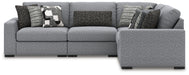 Details Includes 4 modular pieces: left-arm facing corner chair, armless chair, wedge and right-arm facing corner chair, "Left-arm" and "right-arm" describe the position of the arm when you face the piece, Modular pieces can float anywhere; sides are finished (with no connectors), Corner-blocked frame, Reversible seat and back cushions; high-resiliency foam cushions wrapped in poly fiber, Accent pillows included; pillows with soft polyfill, Polyester upholstery, Next-Gen Nuvella is a performance fabric that is soft, easy to clean, stain-resistant and durable, Easy-to-remove zippered covers for machine washing, Clean fabric with mild soap and water, let air dry; for stubborn stains, use a solution of 4 oz. bleach to 28 oz. water, Low-profile accent legs with faux wood finish, Platform foundation system resists sagging 3x better than spring system after 20,000 testing cycles by providing more even support, Smooth platform foundation maintains tight, wrinkle-free look without dips or sags that can occur over time with sinuous spring foundations