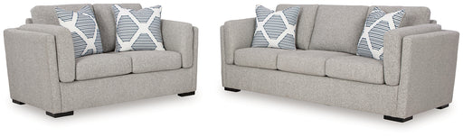Signature Design by Ashley®Revamp your sleekly styled living room sanctuary with this sofa and loveseat package. Well-suited to contemporary spaces with a calming neutral uph...