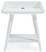 Display your decor with simple style on this accent table. Constructed of wood and engineered wood in a crisp, white finish, this table blends easily with your existing living room aesthetic or stands in as a kid's bedside table. A gallery rail top, undermount shelf and dual USB chargers keep your life (and your look) simply sensational.