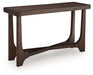 Master the art of casual contemporary design with the Korestone sofa table. Its softly rounded wood frame top pairs perfectly with an eye-catching double wishbone base and a rich brown finish for a decidedly here and now vibe. Talk about the ideal spot for decor, plants and more.