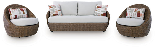 Signature Design by Ashley®Poolside comfort and style have never been so chic. With this outdoor loveseat and swivel chairs set, lounging alfresco is effortlessly cool. The w...