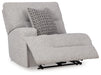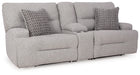 | Details | Includes 3 modular pieces: left-arm facing power recliner, console with storage and right-arm facing power recliner, "Left-arm" and "right-arm" describe the position of the arm when you face the piece, Versatile modular pieces fit together in a variety of configurations, One-touch power control with adjustable positions, Easy View™ adjustable headrest and zero-draw USB port, Zero-draw technology only consumes power when the USB receptacle is in use, Zero-gravity mechanism allows optimum reclining comfort with infinite reclining positions at the touch of a button, Corner-blocked frame with metal reinforced seat, Attached cushions; high-quality foam cushions wrapped in poly fiber, Accent pillows included; pillows with soft polyfill, Polyester upholstery, Next-Gen Nuvella™ is a performance fabric that is soft, easy to clean, stain-resistant and durable, Clean fabric with mild soap and water, let air dry; for stubborn stains, use a solution of 4 oz. bleach to 28 oz. water, Console with 2 cup holders and hidden storage; power cord included; UL Listed | |