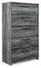Beachy style and lots of storage go hand in hand with this chest. Its driftwood and surfer-inspired smoky finish creates a rustic look that's perfect for setting the scene of an island getaway. Five roomy drawers give you the space needed for stowing away clothes and more. Clean lines and modern handles provide an authentic look to be admired for years to come.