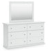 | Details | Includes dresser and mirror, Made of engineered wood (MDF/particleboard), Knobs with pewter-tone finish, Scalloped moulding, 6 smooth-operating drawers, Includes tipover restraint device, Mirror attaches to back of dresser; can also be mounted on wall horizontally or vertically, Safety is a top priority, clothing storage units are designed to meet the most current standard for stability, ASTM F 2057 (ASTM International), Drawers extend out to accommodate maximum access to drawer interior while maintaining safety | |