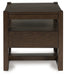 If casual contemporary style is your thing, then you'll love this end table. A wood-tone finish with a rich, dark grain contrast lends a soothing sensibility, while the unique open shelf design and spacious storage drawer add function to great form. Sleek and stylish, this piece is a fresh take on cool for the modern home.