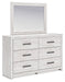 | Details | Includes dresser and mirror, Made with engineered wood (MDF/particleboard/plywood) and decorative laminate for the right balance of affordability and durability, Whitewash replicated worn through paint with authentic touch, Decorative laminate replicates natural or man-made material surfaces with consistent color, pattern and texture, Large handles in black finish, 6 smooth-gliding drawers, Framed front and pilasters, Mirror attaches to back of dresser, Safety is a top priority, clothing storage units are designed to meet the most current standard for stability, ASTM F 2057 (ASTM International), Drawers extend out to accommodate maximum access to drawer interior while maintaining safety, Minor assembly required | |