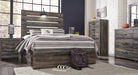 When merged in just the right way, rustic and industrial styles can make one happy marriage. Case in point: this queen panel bed with storage. A refined take on barn board beauty, its complex, replicated wood grain showcases hints of burnt orange and teal tones for a sense of weatherworn authenticity. Love to read in bed? You’re sure to find the pair of retro-chic light sconces and USB plug-ins on the open-slat style headboard such a bright idea. Underneath the bed: four smooth-gliding drawers and four open cubbies that accommodate casually cool storage bins.