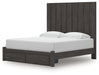 Find serene simplicity in the clean lines and dark neutral tones of this queen panel storage bed. It’s a sincere approach to modern elegance, giving you high style at a great value. Short on storage? Smooth-gliding drawers in the footboard keep clutter neatly tucked away. Vertical planks decorate the generously scaled headboard to give the illusion of additional height, polishing off the piece in grand fashion.