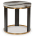 Ultra-contemporary design, everyday convenience. This end table completes your confidently curated living room with its trend-forward pairing of a marble-patterned top and an eye-catching brass-tone frame. Dark wood grain on the legs provides a beautiful contrast. It's well-suited for supporting a sofa-side lamp, holding drinks or displaying decor in sophisticated style.