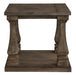 Homey. Hearty. Heavenly hued. Luring with a distressed weathered gray finish and square baluster legs set on a broad lower shelf for great presence, the Johnelle end table is sure to make your homestead feel that much more like home. The look is beautified with elm veneers and a framed and plank-effect tabletop for a richly crafted masterpiece made for years of satisfaction.