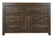 Get the look of posh barn wood without setting foot in a salvage yard. Replicated rough-sawn oak of this dresser has a vintage finish that is reminiscent of a timeworn family heirloom. Warm, rustic and naturally beautiful, it’s just got that ageless appeal. Sleek, mod pulls in a pewter tone are a snappy finishing touch.