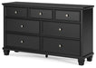 | Details | Made with hardwood solids, birch veneer and MDF substrate, Black painted finish, 7 smooth-gliding drawers with dovetail construction and ball-bearing side glides, Round metal drawer knobs with satin nickel-tone finish, Framed drawer fronts, Tapered feet | |