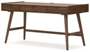 A refreshed take on retro aesthetics. This home office desk adds an air of playful simplicity to your workspace, capturing the architectural language of mid-century stylings. Subtle in design, it invites the eye with a sleek, open frame. A casual, yet timeless, finish and three storage drawers complete this study in form and function.