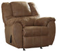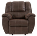 Rock the cool look of leather and the warm feel of fabric with this rocker recliner. Sporting sumptuously thick cushioning, fashion-forward jumbo stitching and a richly tailored aesthetic, this smartly priced recliner with gentle rocking motion is a bestseller for good reason.