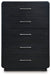 | Details | Made with hardwood solids and ash veneer, Black finish on textured wood grain surface, Burnished nickel-tone pulls, Waterfall edges, 5 smooth-gliding drawers with fully finished interior, dovetail construction and heavy duty ball-bearing side glides | |