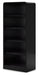 Details Made with hardwood solids, oak veneer and MDF substrate, Black finish on textured wood grain surface, 5 storage shelves; 2 upper and lower shelves are adjustable, Assembly required