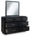 | Details | B821B2: Includes upholstered panel headboard, footboard and rails , Made with hardwood solids and ash veneer, Black finish on textured wood grain surface , Waterfall edges, Polyester upholstery, Foundation/box spring required, sold separately, Mattress available, sold separately, Assembly required, B821B1: Includes dresser and mirror, Made with hardwood solids and ash veneer, Black finish on textured wood grain surface , Burnished nickel-tone pulls, Waterfall edges, 7 smooth-gliding drawers with fully finished interior, dovetail construction and heavy duty ball-bearing side glides, Mirror attaches to back of dresser, | |