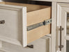 | Details | B683B7: Includes panel headboard, footboard, rails and slats, Made with hardwood solids, veneers and MDF substrates, Two-tone finish (antiqued white and light gray wood tone), Foundation/box spring required, sold separately, Mattress available, sold separately, Assembly required, B683B1: Includes dresser and mirror, Made with hardwood solids, veneers and MDF substrates, Two-tone finish (antiqued white and light gray wood tone), Dark bronze-tone bar pulls, 2 glass-front cabinets, each with single storage shelf, 5 drawers with fully finished interior, dovetail construction and heavy duty ball-bearing side glides (top drawer felt lined), Mirror attaches to back of dresser, B683-92: Made with hardwood solids, veneers and MDF substrates, Two-tone finish (antiqued white and light gray wood tone), Dark bronze-tone bar pulls, 2 drawers with fully finished interior, dovetail construction and heavy duty ball-bearing side glides (top drawer felt lined), 110V power supply with USB-A and USB-C charging ports, Power cord included; UL Listed, | |