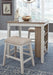 | Details | Includes counter height table and 2 bar stools, Made of wood, acacia veneer and engineered wood, Distressed grayish white finish, Cushioned seat with polyester upholstery, 3 open shelves, Assembly required | |