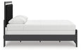 Details Includes upholstered panel headboard, panel footboard and panel rails, Made with engineered wood (MDF/particleboard/plywood) and decorative laminate for the right balance of affordability and durability, Matte black finish with subtle replicated wood grain, Decorative laminate replicates natural or man-made material surfaces with consistent color, pattern and texture, Polyester upholstery, Chrome-tone and glitter accents, Foundation/box spring required, sold separately, Mattress available, sold separately, Minor assembly required